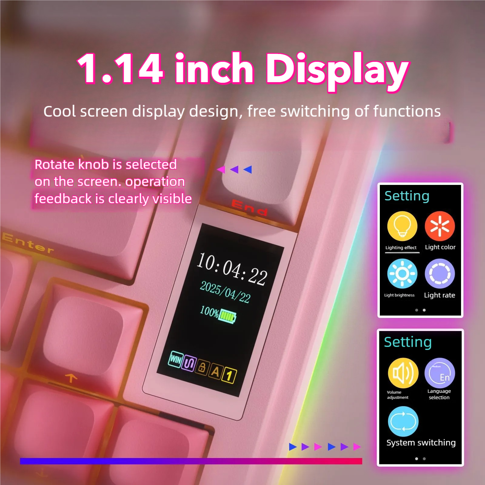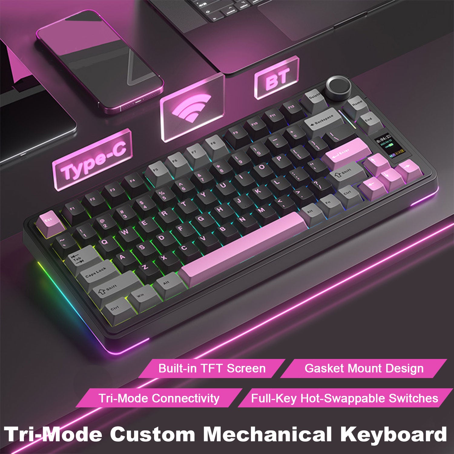 Redefine Your Typing Experience. The AULA S75 Pro combines cutting-edge customization with advanced functionality. Featuring a built-in intelligent display, seamless tri-mode connectivity, and a sleek gradient design with side-printed keycaps, this keyboard delivers both premium performance and sophisticated aesthetics for gaming enthusiasts and professionals alike.