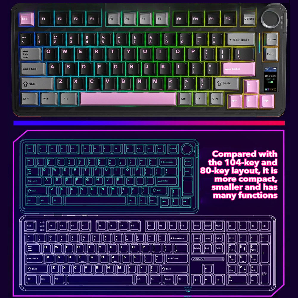 AULA S75 Pro Custom Mechanical Keyboard - Wireless Tri-Mode with Display