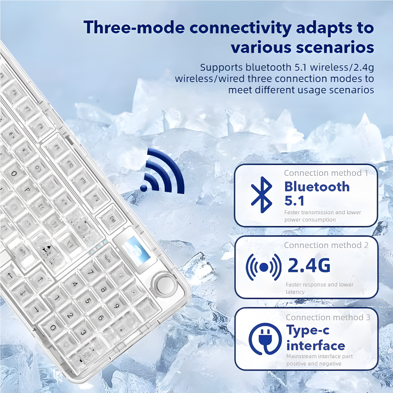 Ideal for mechanical keyboard enthusiasts, gamers, and professionals seeking a transparent aesthetic keyboard with advanced features like smart display and exceptional battery life