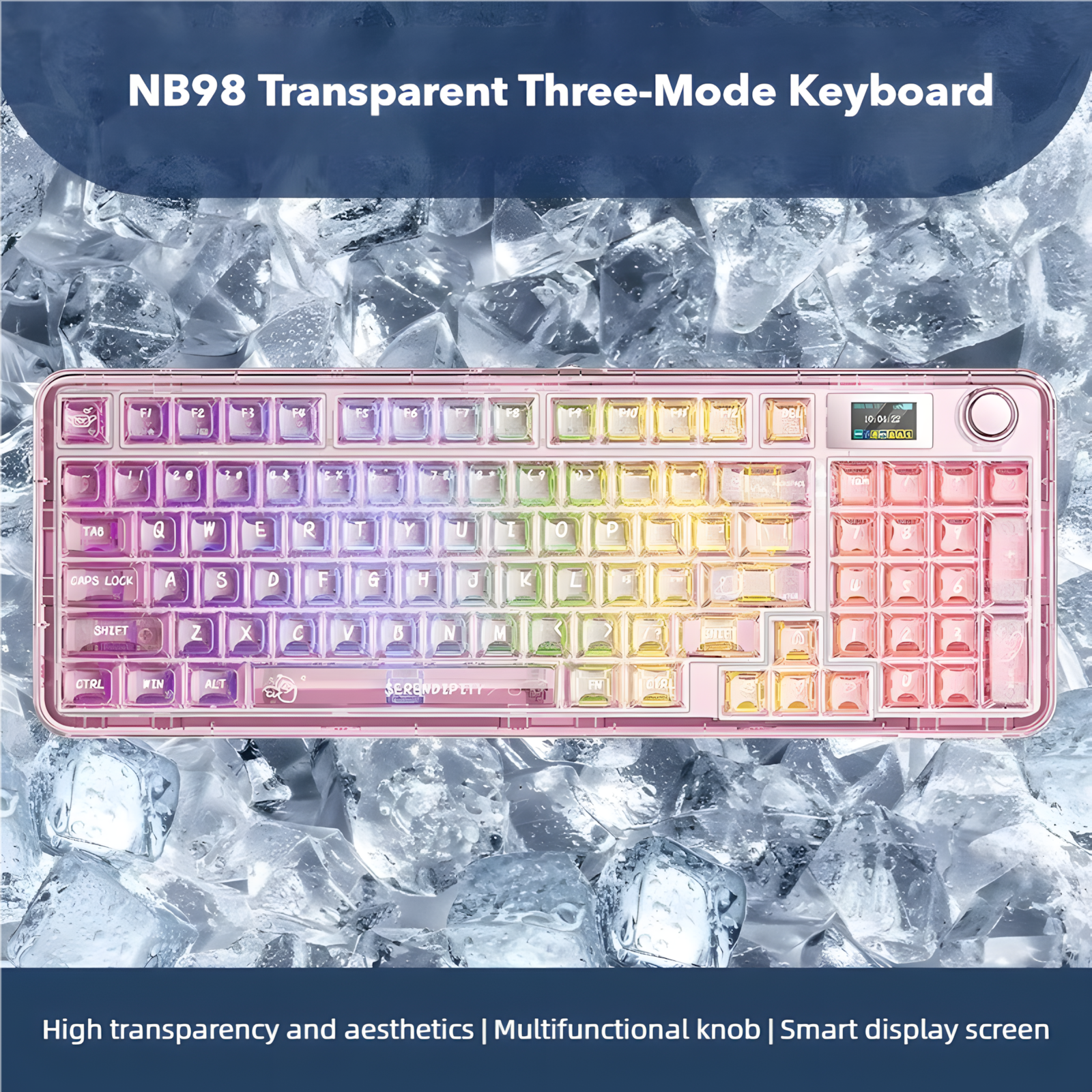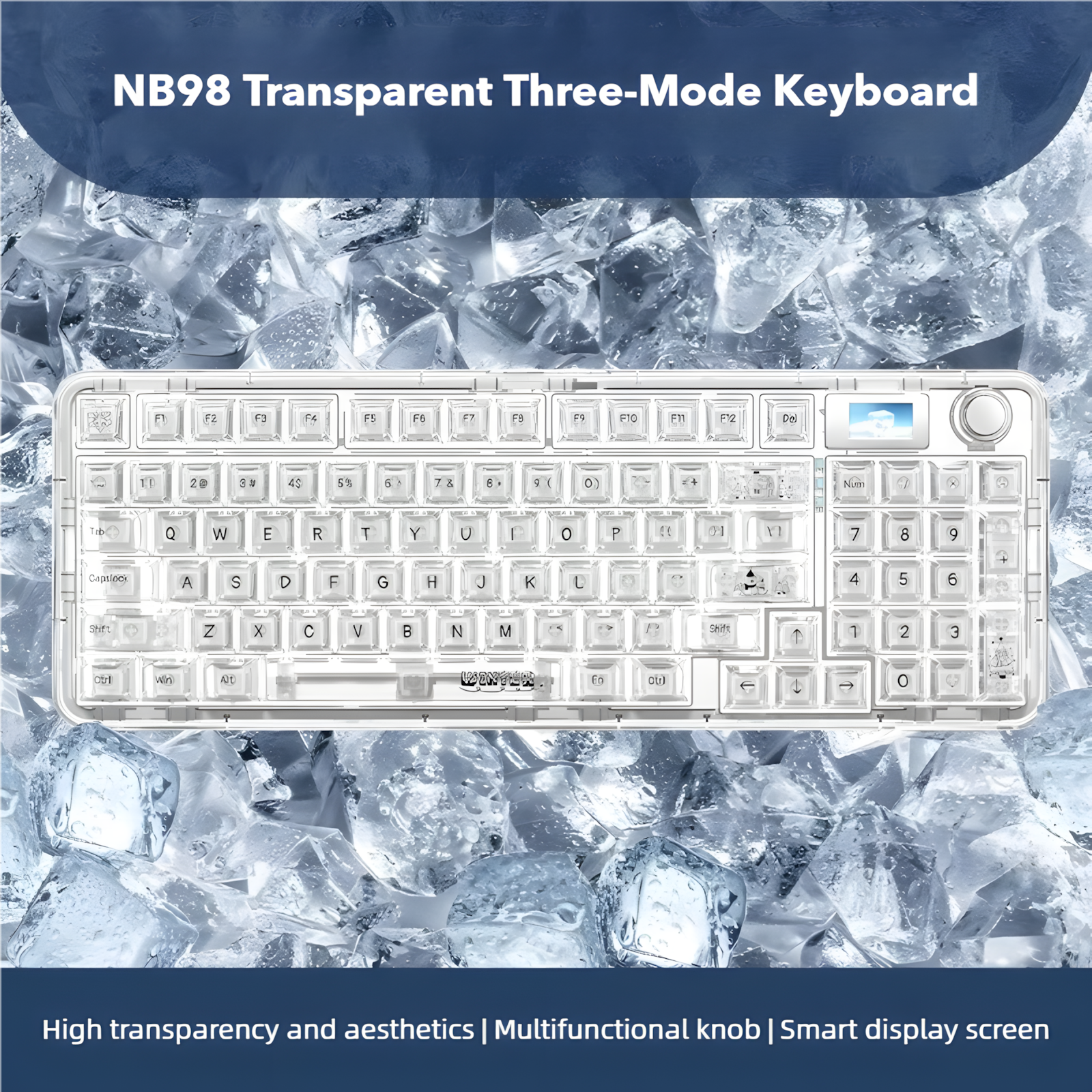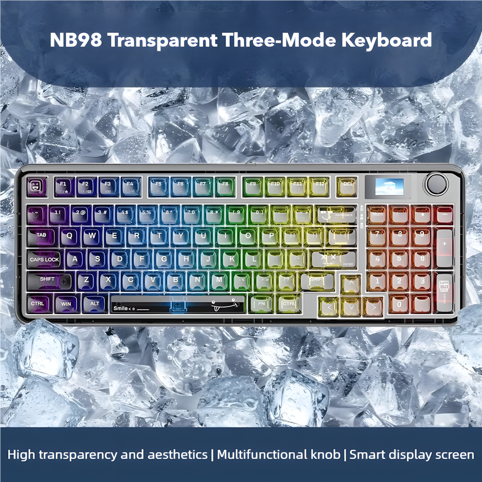 AULA NB98 98% Layout Transparent Mechanical Keyboard - Wireless Tri-Mode with Smart Display