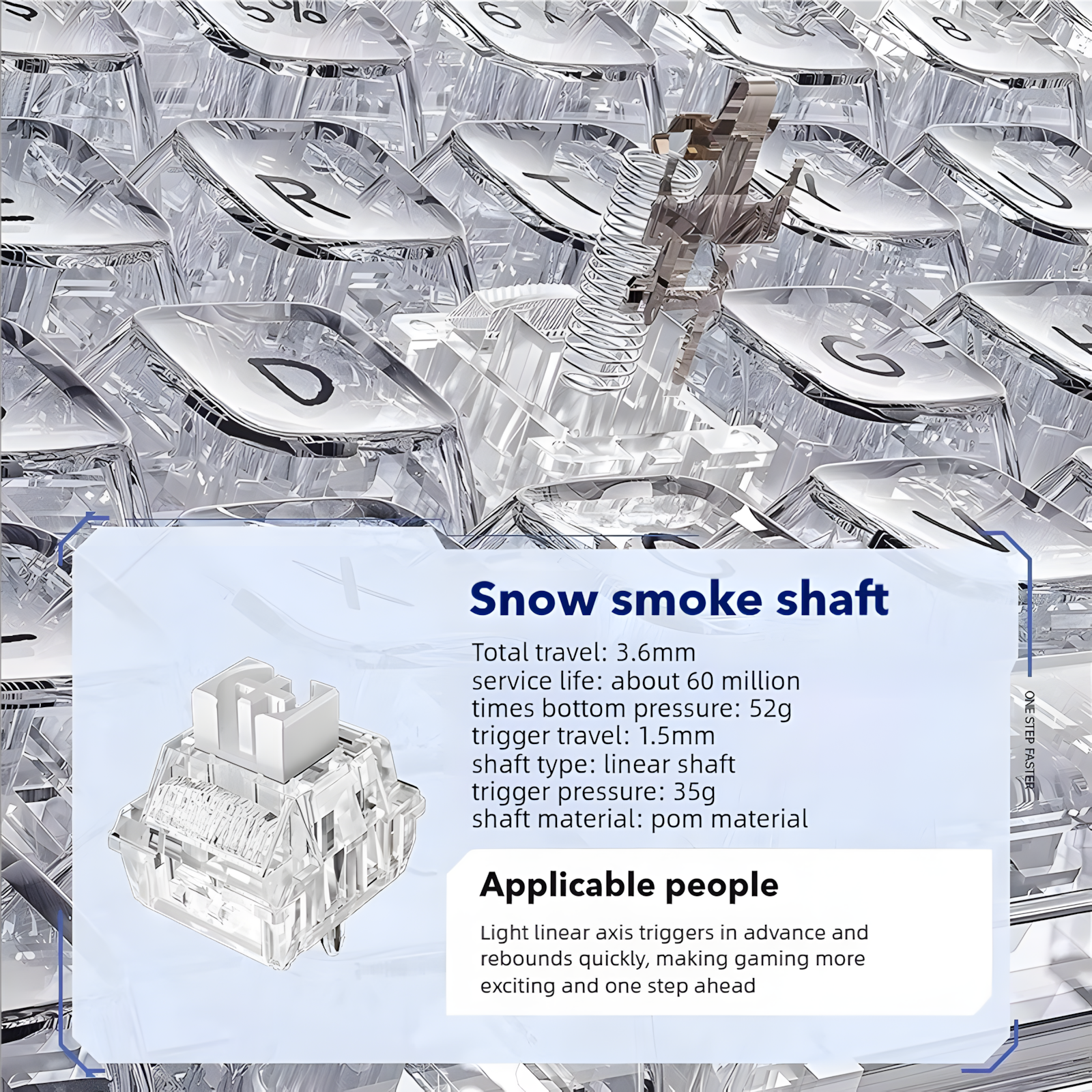 • Pre-lubed Snow Smoke Switches: Smooth linear switches factory-lubricated for consistency