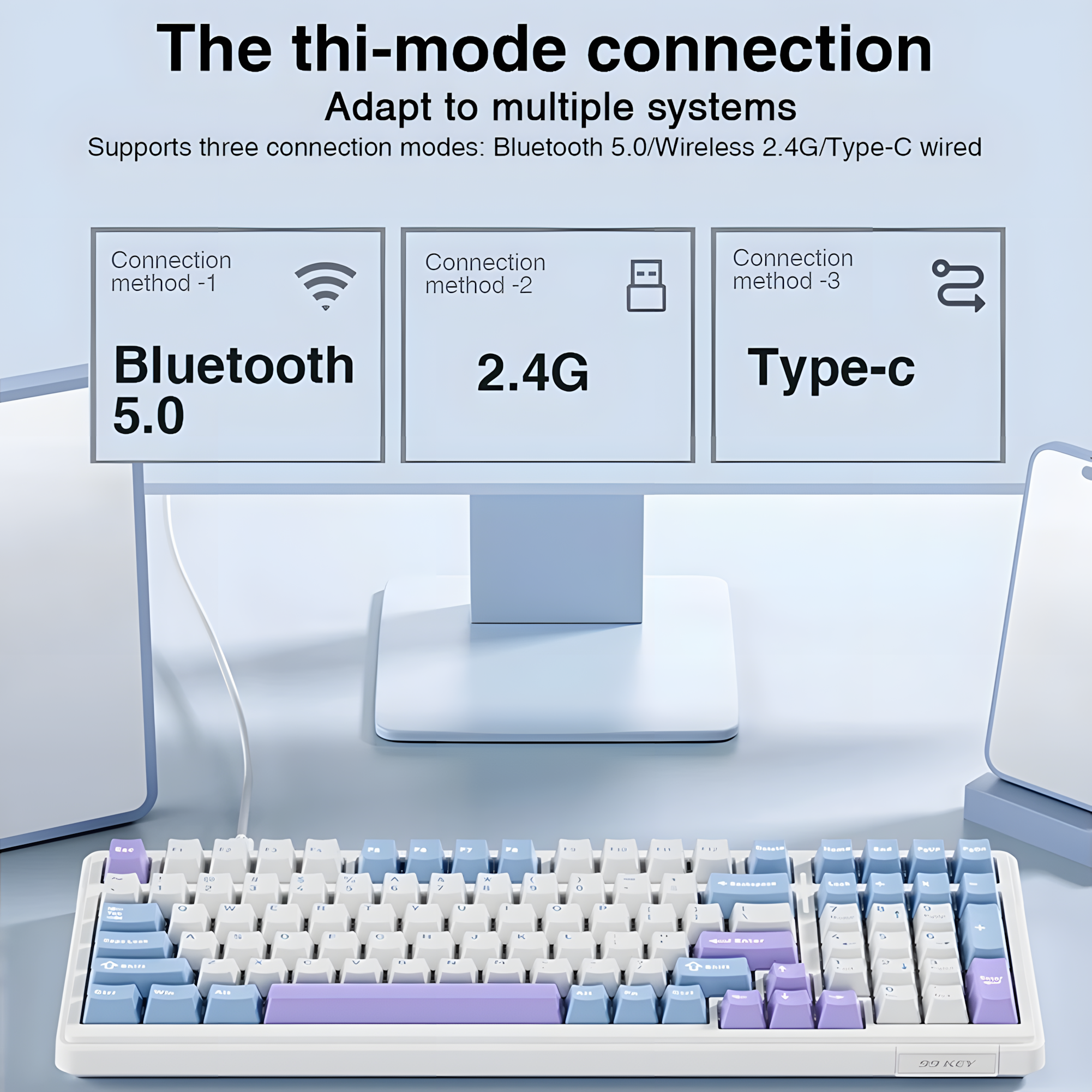 Professional Grade Performance. The AULA F99 series delivers exceptional typing experience with its advanced gasket mount structure and versatile wireless connectivity. Designed for both office productivity and gaming excellence, this keyboard combines premium features with reliable performance.