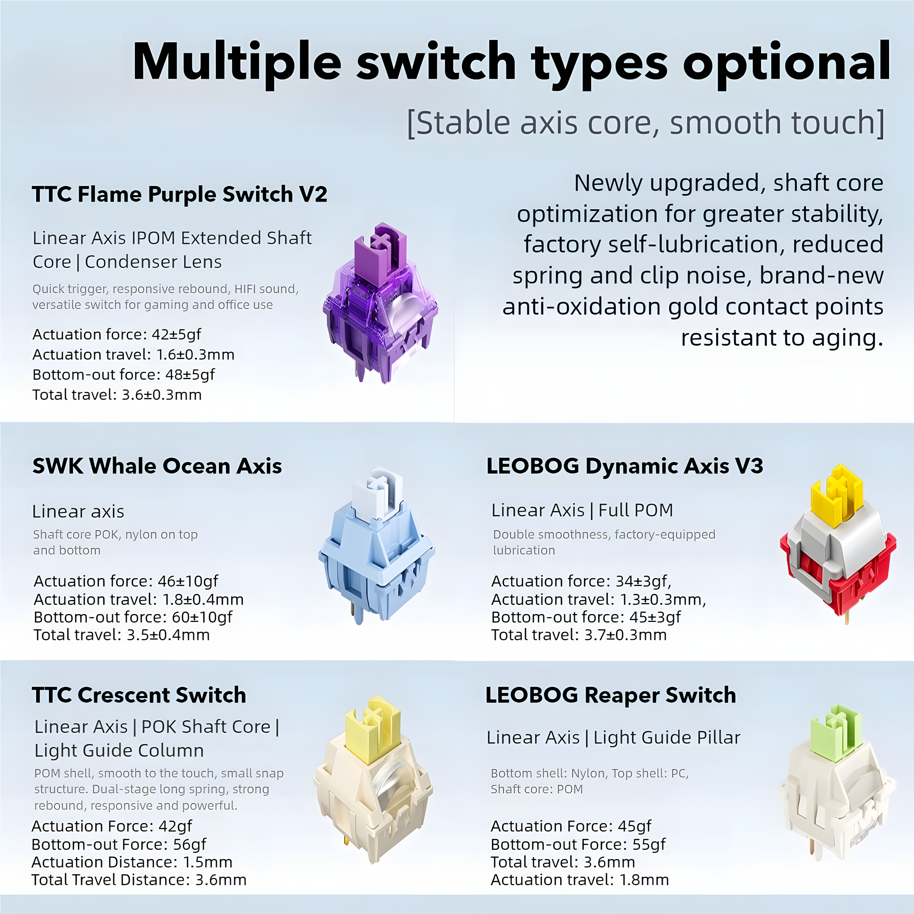 • Hot-Swappable PCB: Supports 3-pin/5-pin mechanical switches