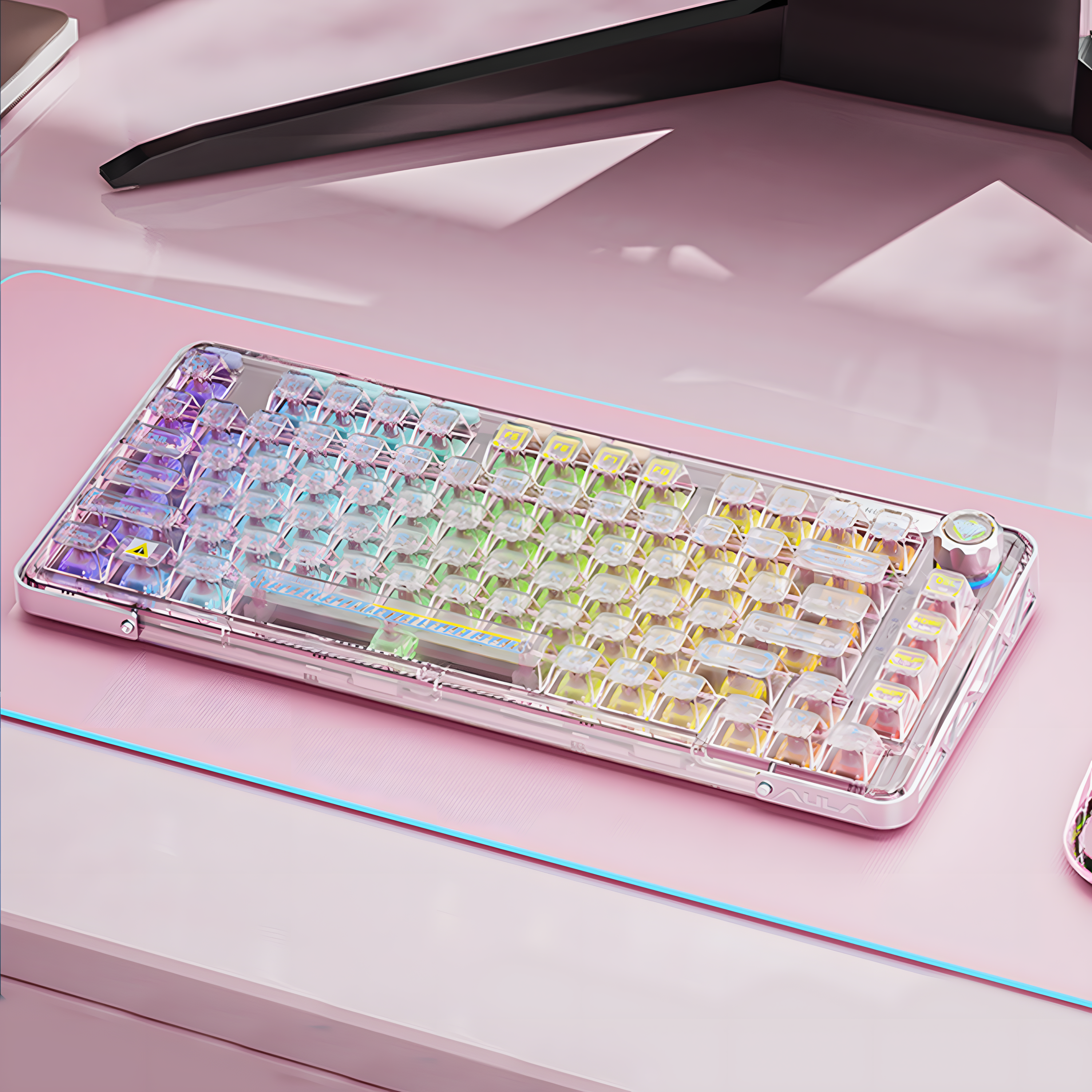 Ideal for gamers, streamers, and professionals seeking a visually striking mechanical keyboard with wireless convenience and full customization capabilities