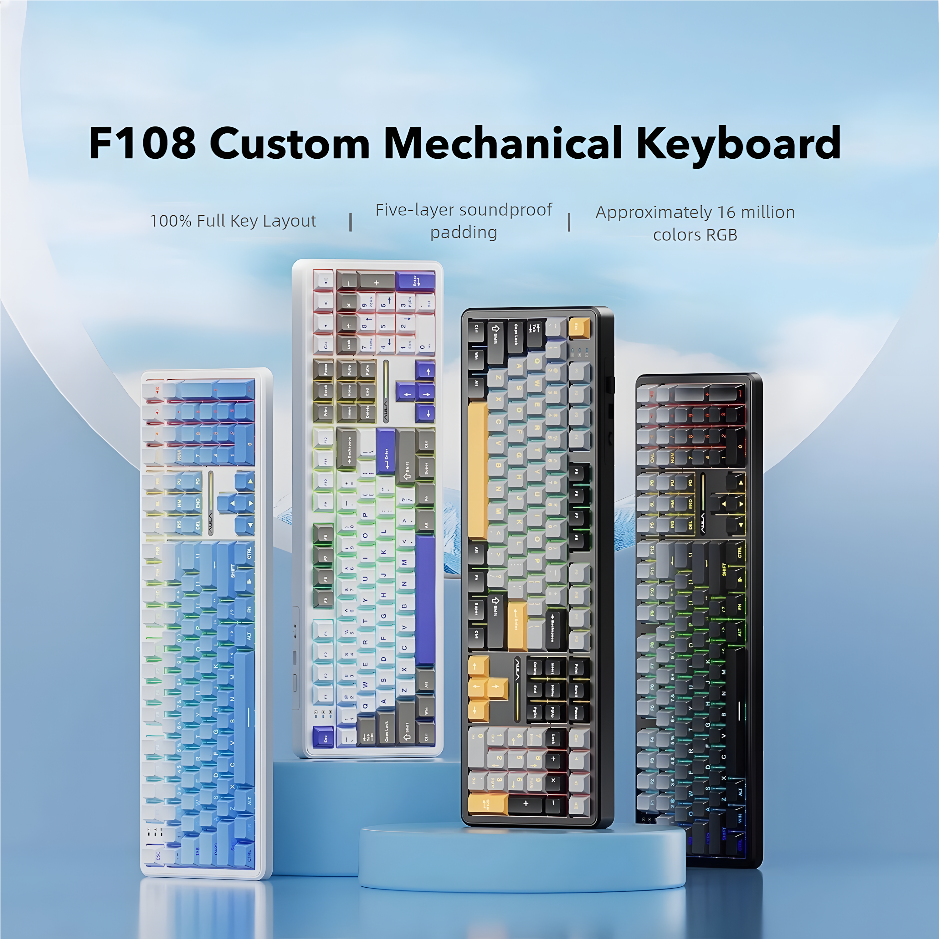 Complete Layout, Unlimited Potential. The AULA F108 delivers a full 108-key mechanical keyboard experience with advanced wireless connectivity and customization features. Perfect for gamers who need dedicated macro keys and professionals requiring a full numeric keypad, this keyboard combines comprehensive functionality with modern mechanical keyboard technology.