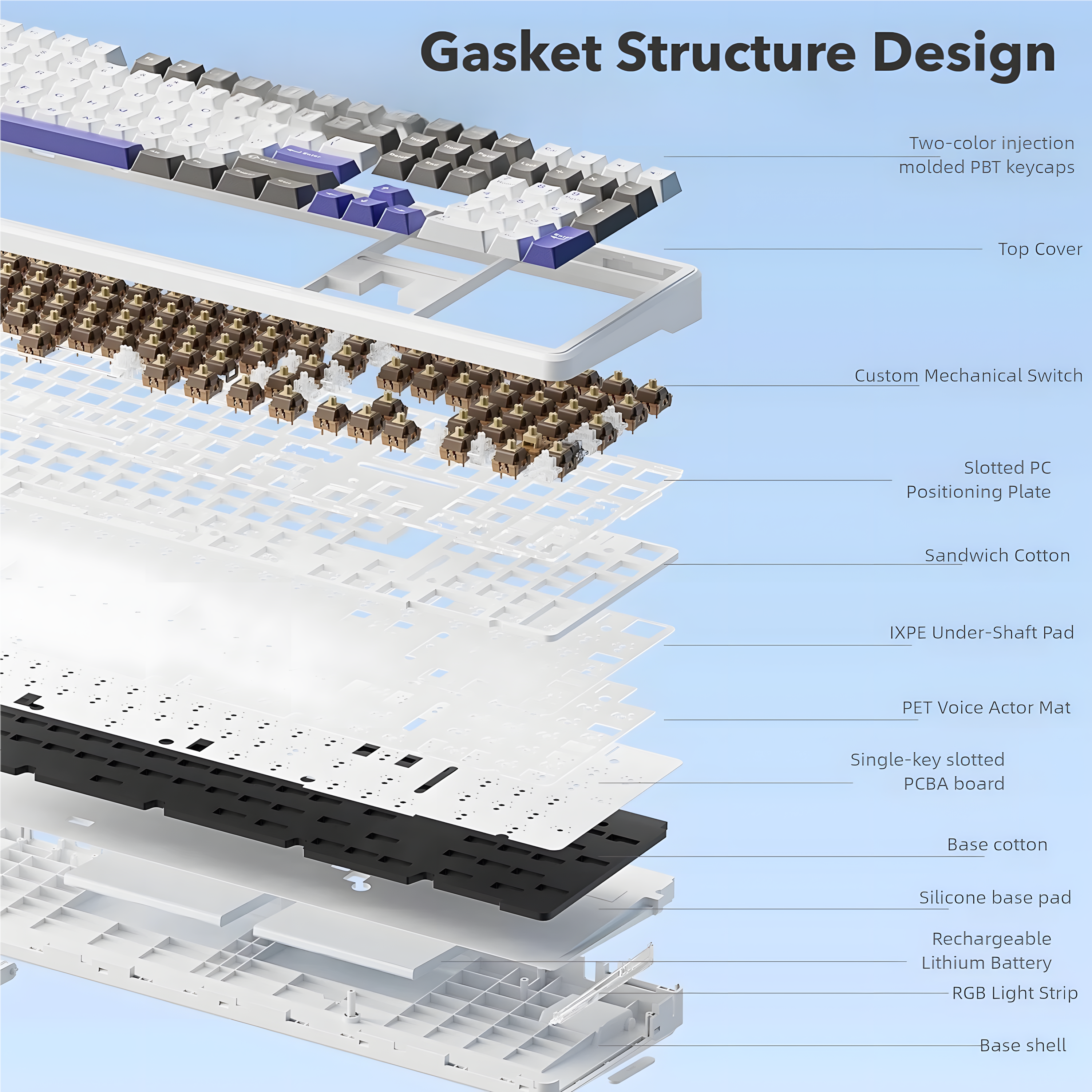 • Gasket Mount Structure: Enhanced typing comfort with sound-dampening features