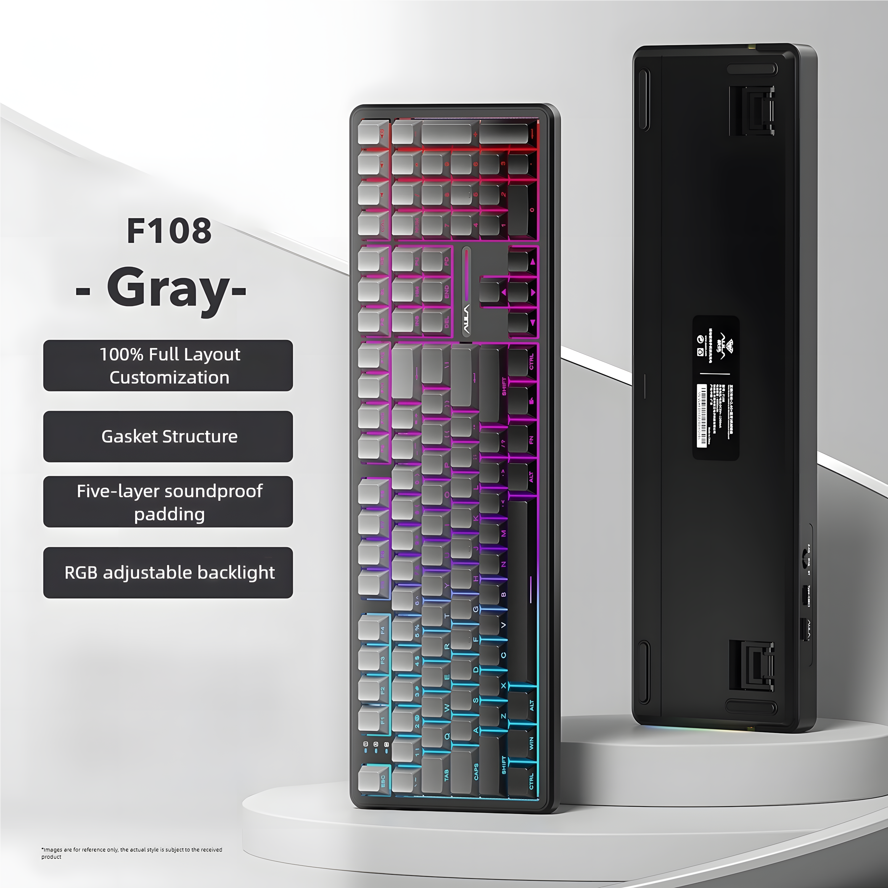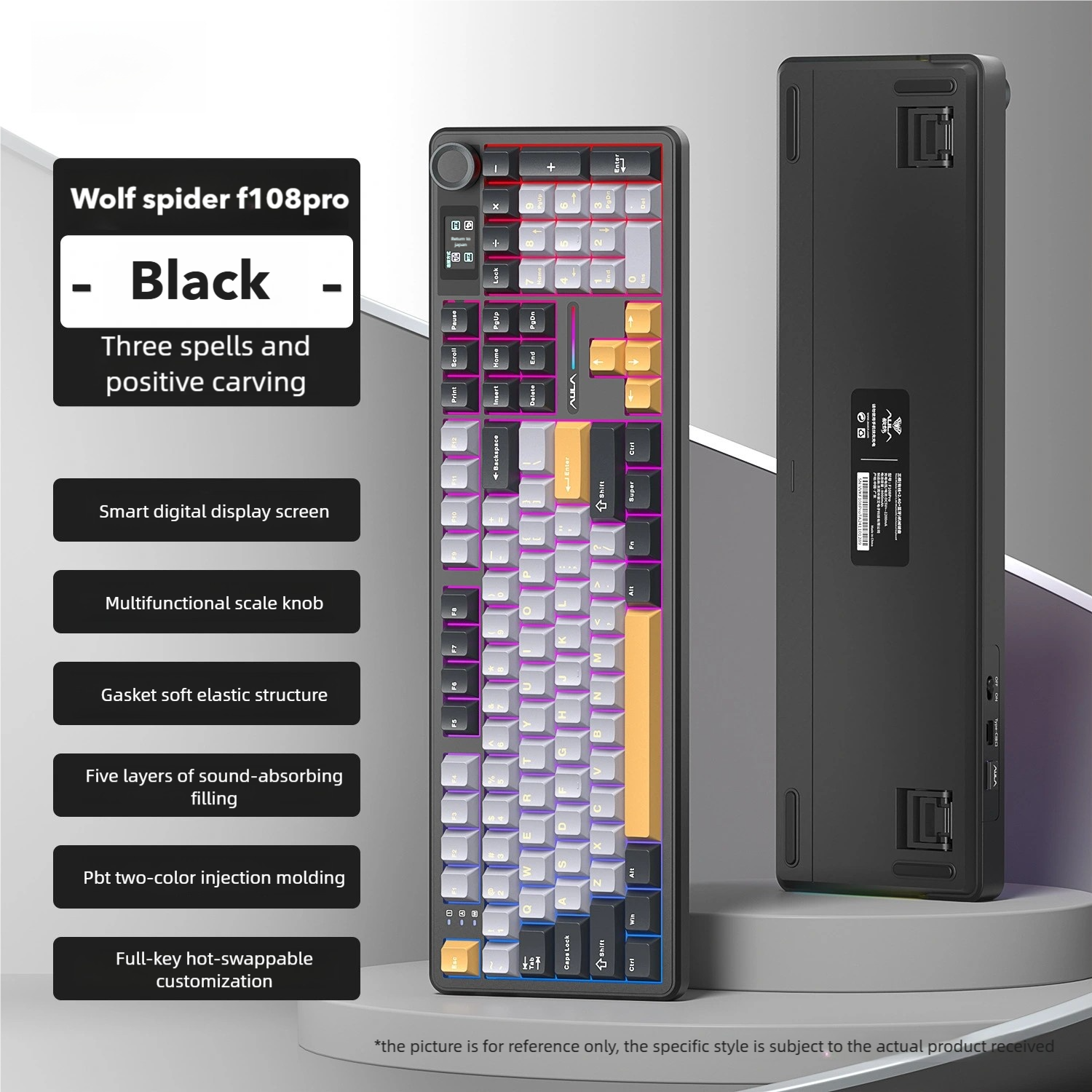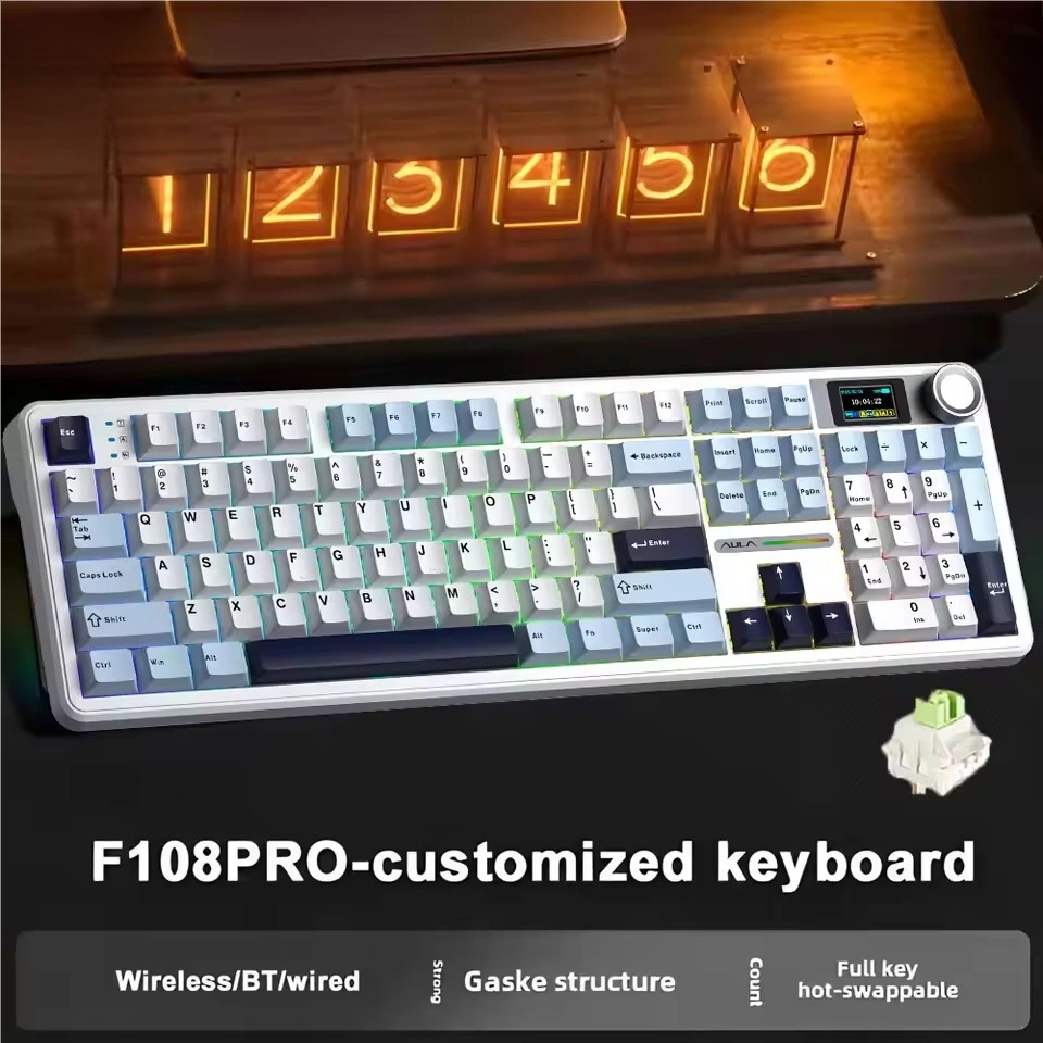 AULA F108 Full-Size Custom Mechanical Keyboard | Wireless Tri-Mode, Hot-Swappable, 108-Key Layout for Gaming & Office