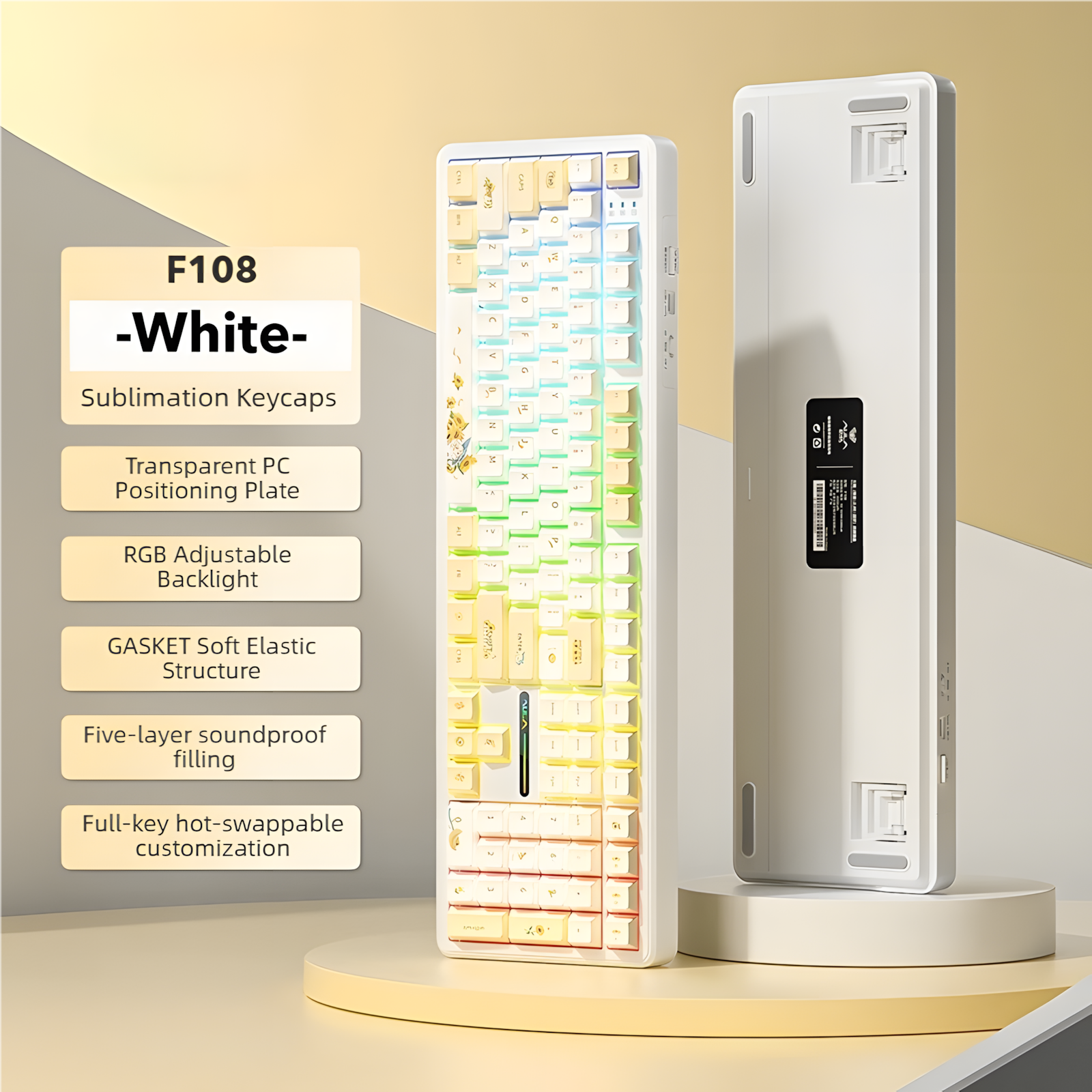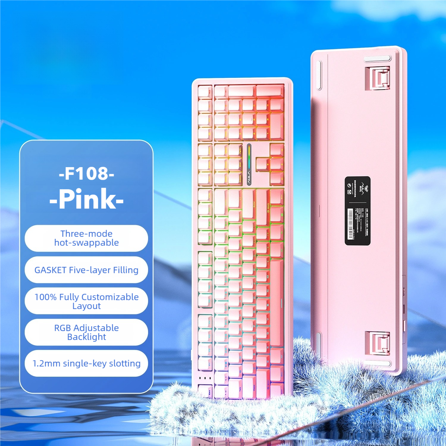 AULA F108 Full-Size Wireless Mechanical Keyboard - Tri-Mode Connectivity & Hot-Swap