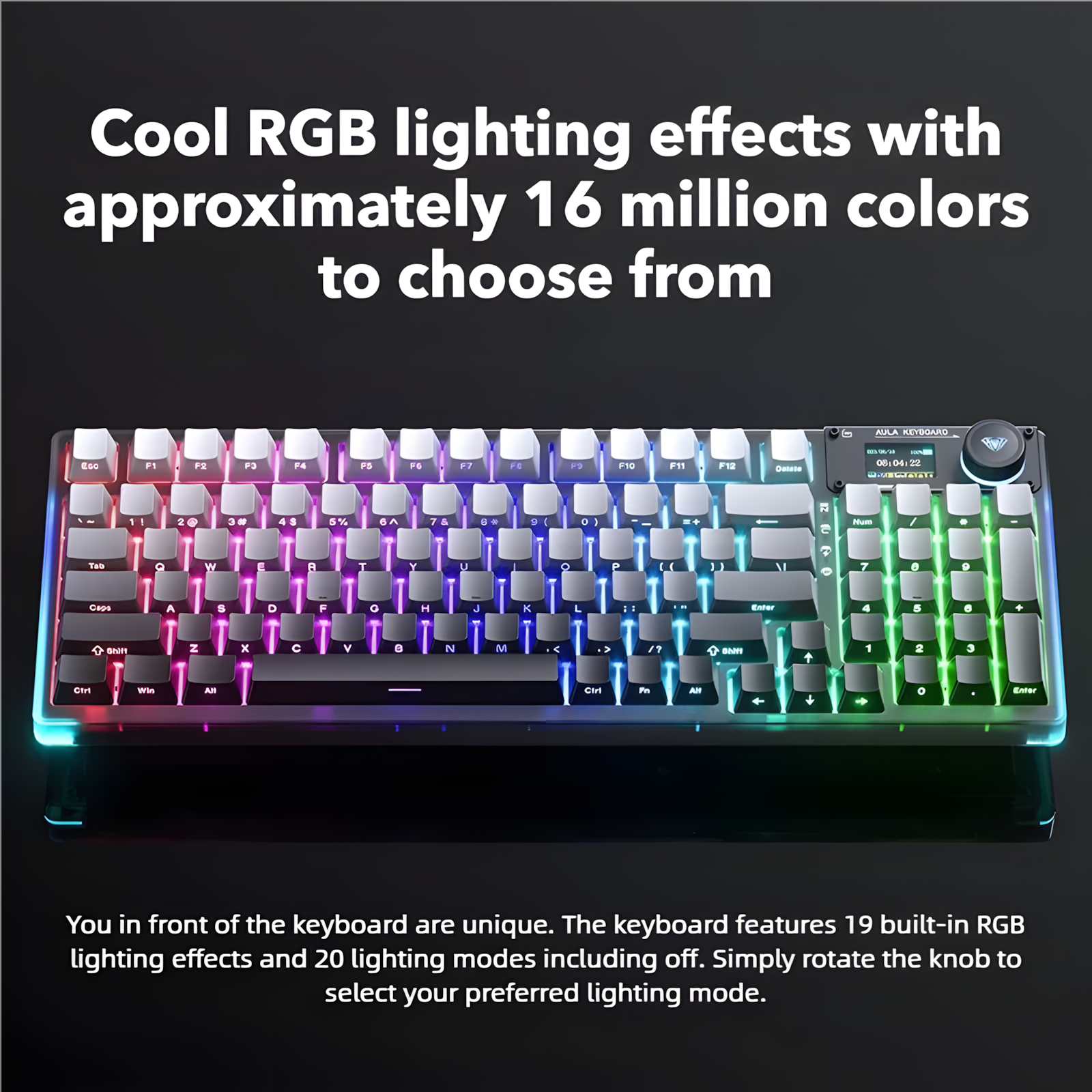 AULA F98 Pro Custom Mechanical Keyboard with Screen | Wireless Tri-Mode, Side-printed Keycaps, Gasket Mount, RGB Backlit Product Description: