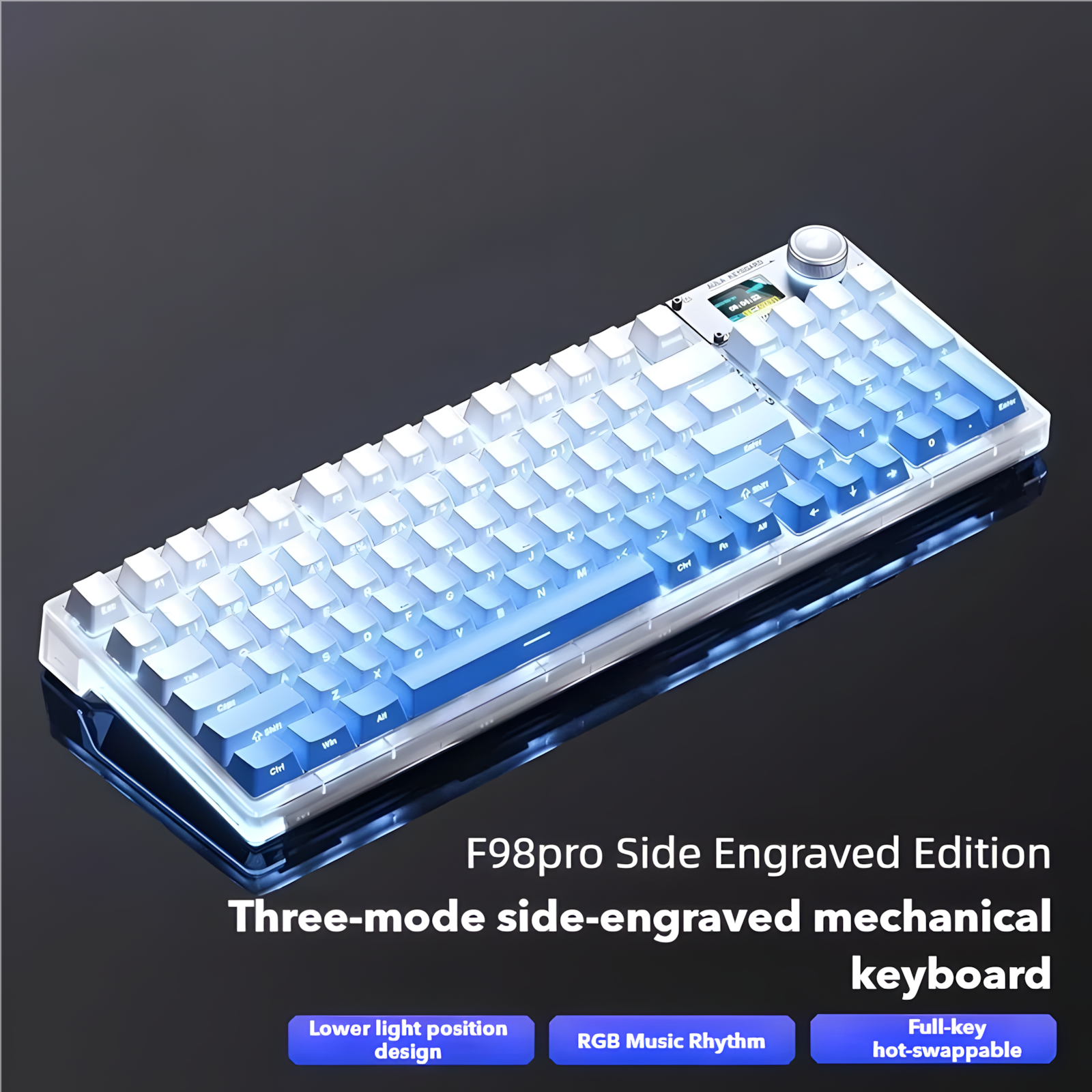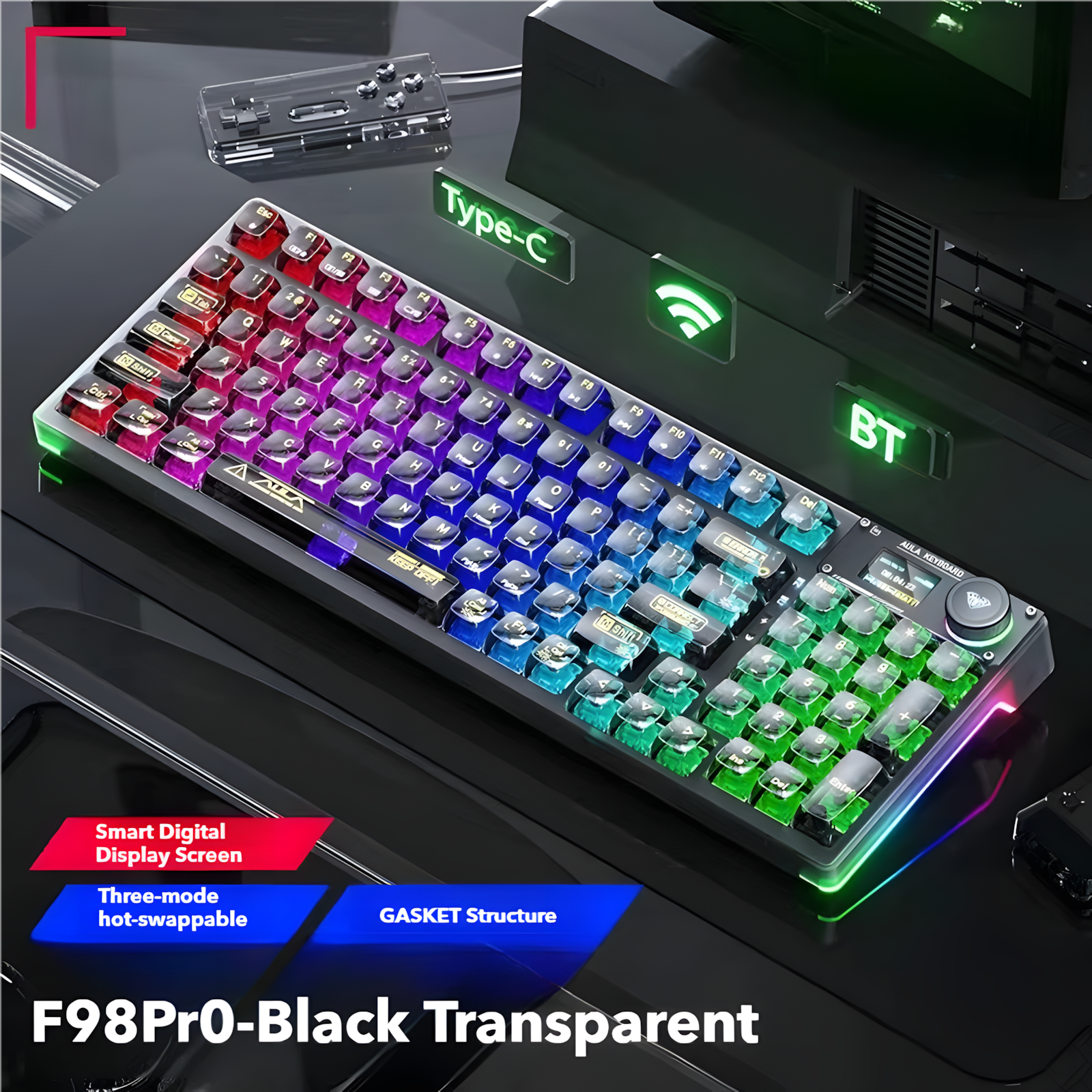 AULA F98 Pro Custom Mechanical Keyboard - Wireless with Smart Display & Side-printed Keycaps
